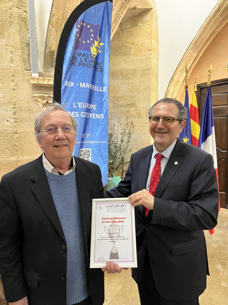 Il a conclu en proposant une idée audacieuse : la création d’une équipe européenne de football, qui pourrait, après les grandes compétitions internationales, affronter des sélections d’autres continents pour donner plus de visibilité à la citoyenneté européenne. À l’issue de son intervention, il a remis à Alain-Pierre Merger un diplôme d’honneur du fair-play 2026, un clin d’œil amical entre l’association Legisport et la MEP.